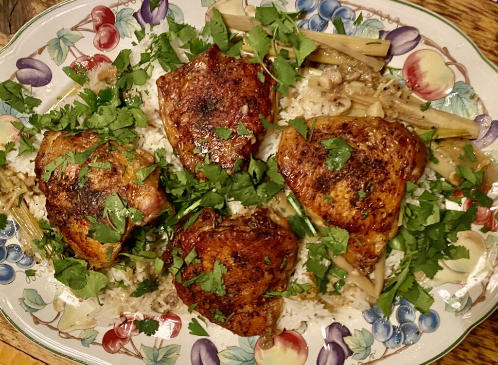 Flattened Chicken Thighs with Lemongrass and coconut milk (Thai-ish)